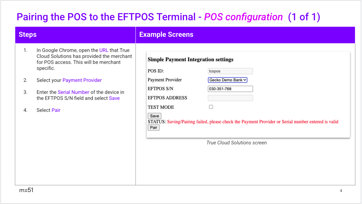 True Cloud Solutions (SPI) POS Pairing and Transaction User Guide True Cloud Solutions POS Pairing and Transaction User Guide.pdf 800 KB Download