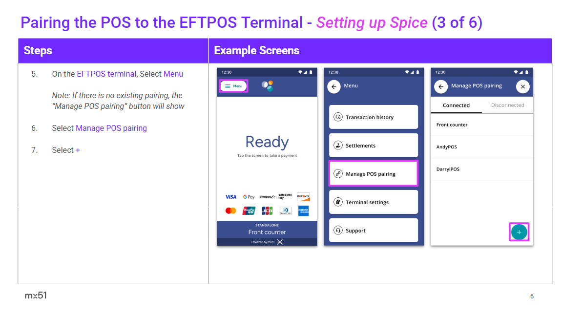 Triniteq PowerEPOS (Spice) POS Pairing and Transaction User Guide Triniteq PowerEPOS (Spice) POS Pairing and Transaction User Guide.pdf 1 MB Download Related articles Independent Solutions (Spice) POS Pairing and Transaction User Guide Apparel21 (SPI) POS Pairing and Transaction User Guide MobiPOS Pairing and Transaction User Guide Oracle Simphony (Spice) POS Pairing and Transaction User Guide SPICE Pairing Guide (with Verifone T650P or CM5 Terminal)