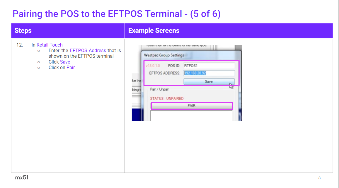Retail Touch (ABS) POS Pairing and Transaction User Guide Retail Touch (ABS) Pairing and Transaction User Guide.pdf 3 MB Download Related articles Abacus iOS (SPI) POS Pairing and Transaction User Guide Newbook POS Pairing Guide ShopPOS (Spice) Pairing and Transaction User Guide esuite Pairing and Transaction User Guide BizFlex Retail Software (Spice) Pairing and Transaction User Guide
