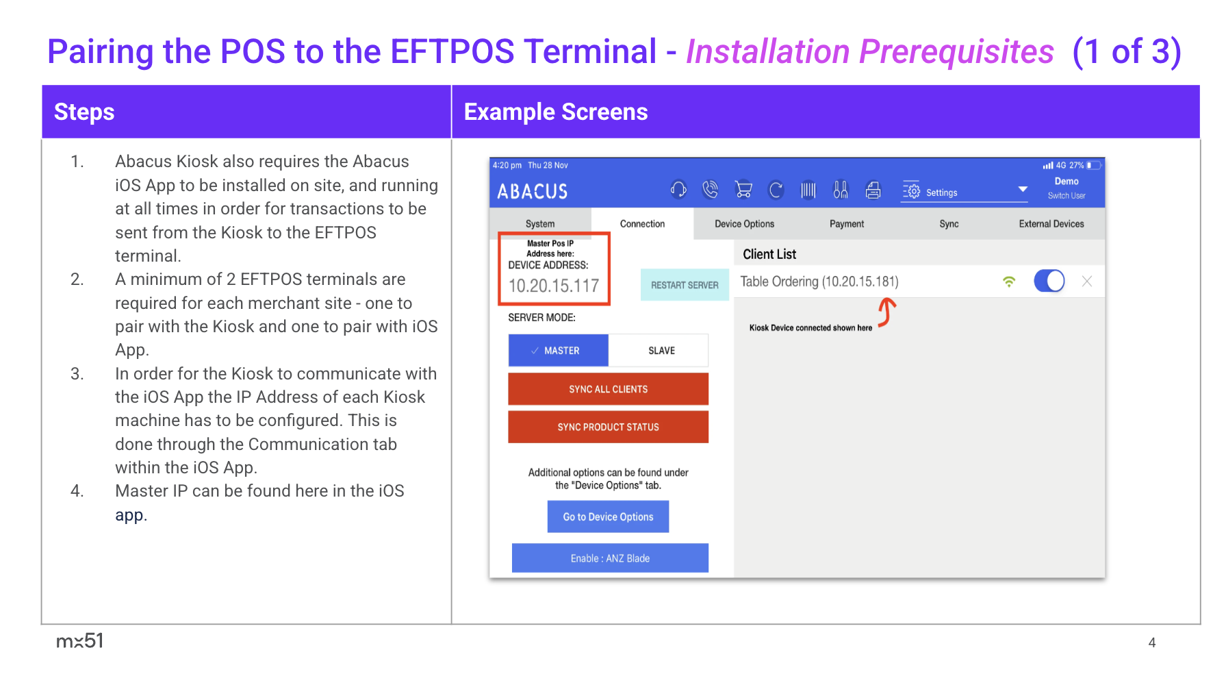 Abacus Self-Serve Kiosk POS Pairing and Transaction User Guide Abacus Self-Serve Kiosk POS Pairing and Transaction User Guide.pdf 2 MB Download Related articles Abacus iOS (SPI) POS Pairing and Transaction User Guide Impos (SPI) POS Pairing and Transaction User Guide Shift8-POS Pairing and Transaction User Guide Ai-Menu (SPI) Pairing and Transaction User Guide Futura4POS Pairing and Transaction User Guide
