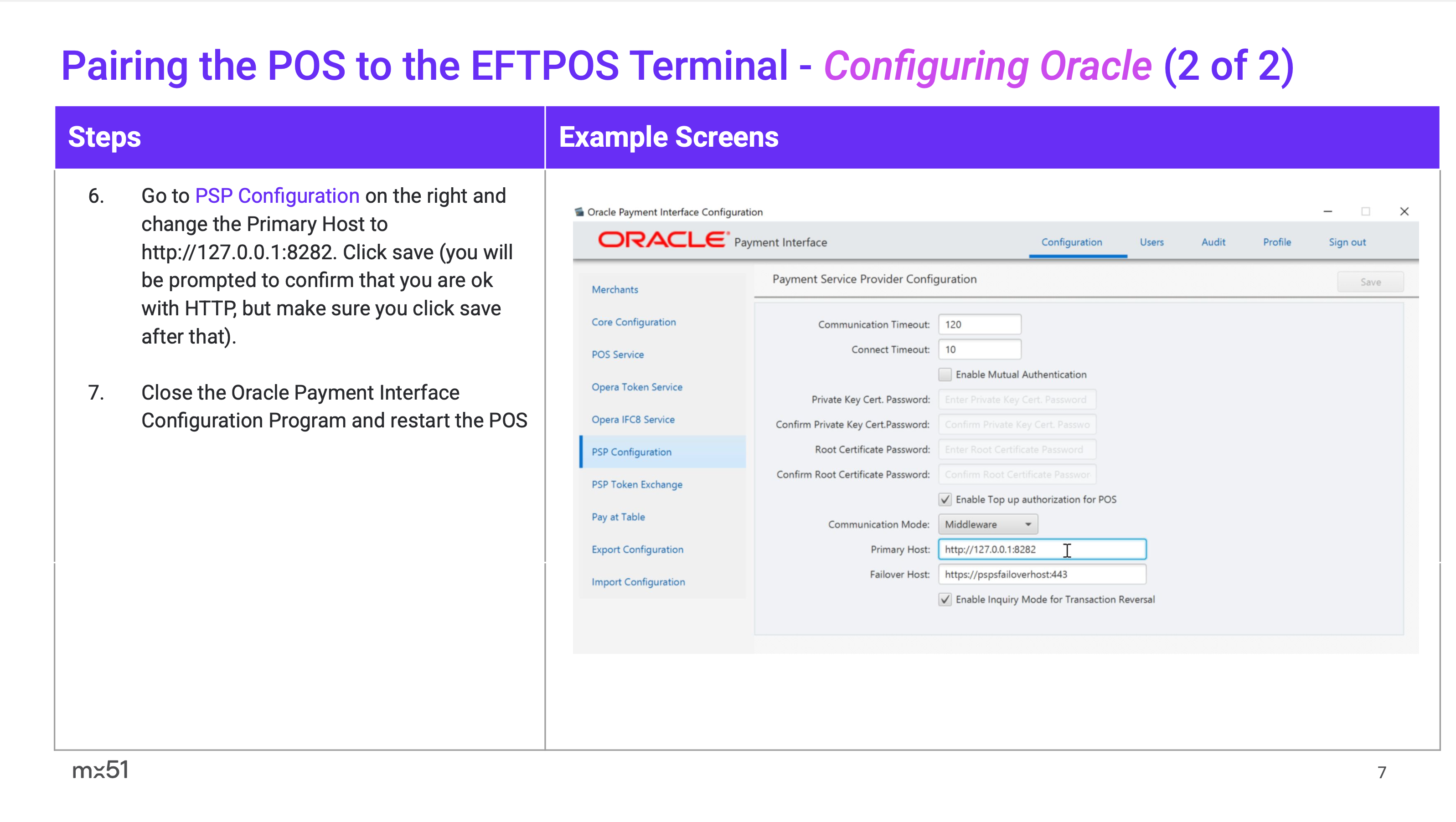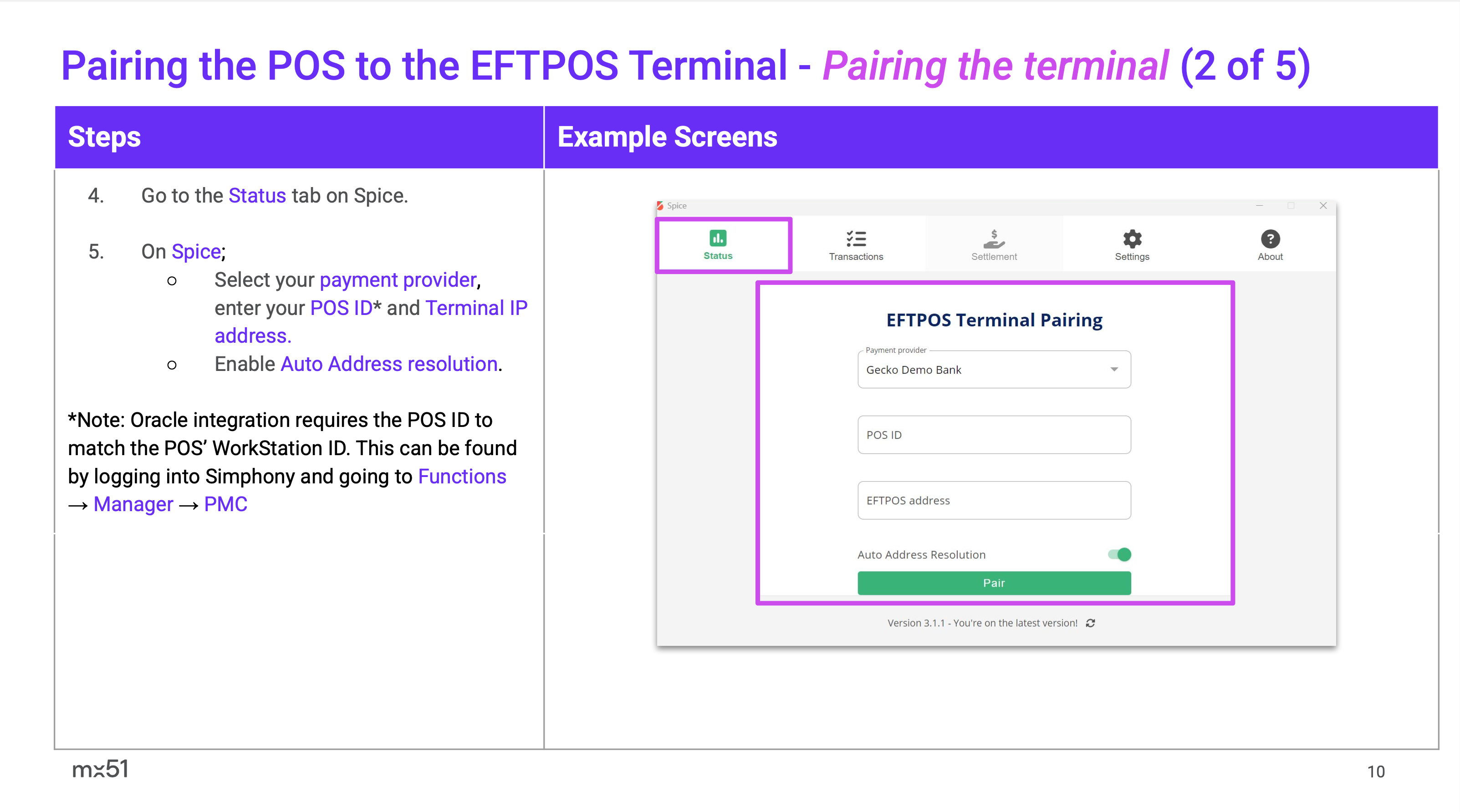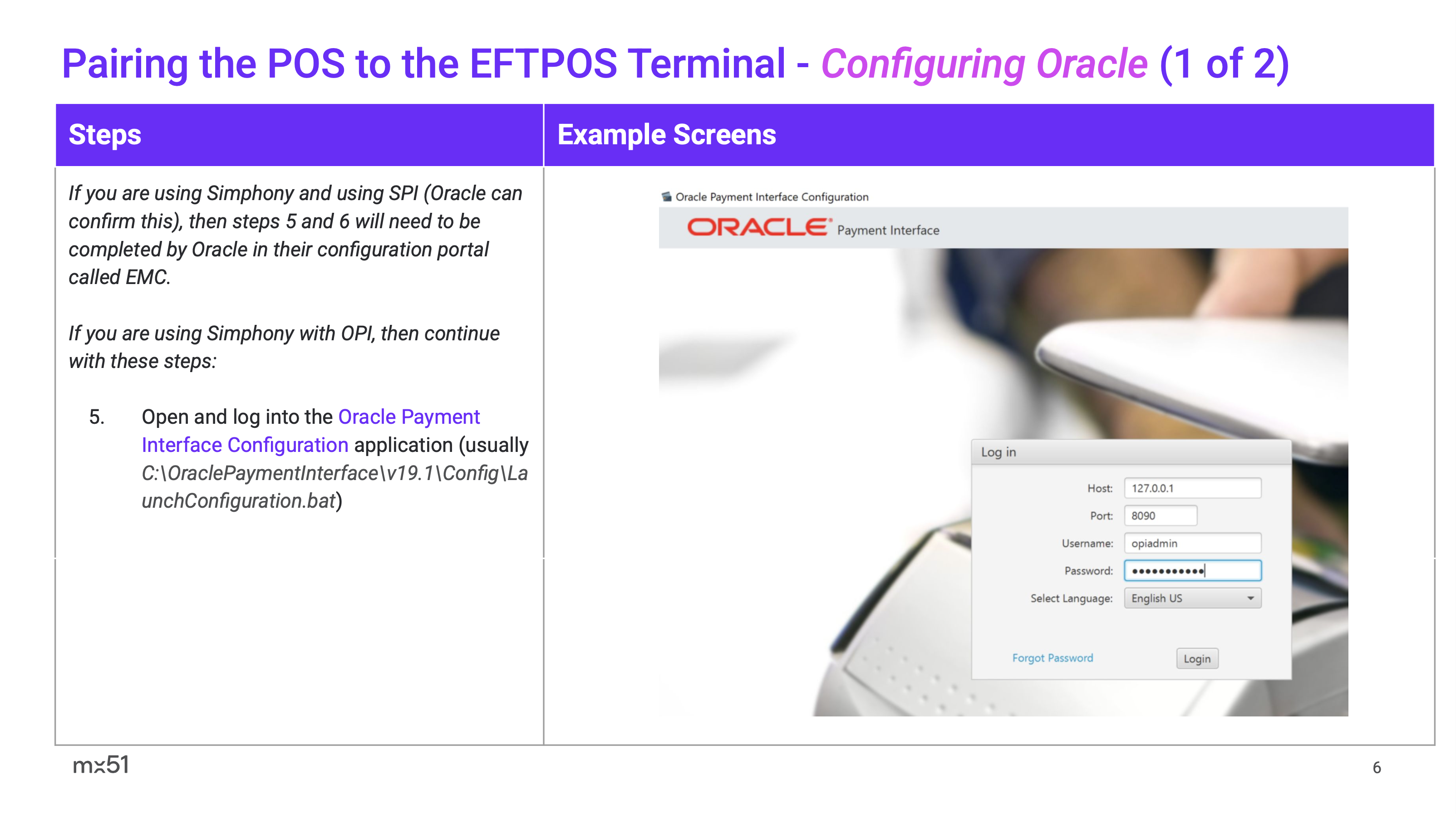 Oracle Simphony (Spice) POS Pairing and Transaction User Guide POS Vendor Features Supported: Purchase Refund MOTO Terminal based Surcharge POS based Tipping Terminal based Tipping Integrated Settlement Integrated Receipts Terminal based Receipts Oracle Simphony POS Pairing and Transaction User Guide.pptx.pdf 1 MB Download Related articles ZiiPOS Pairing and Transaction User Guide Abacus iOS (SPI) POS Pairing and Transaction User Guide POS Solutions Spice Pairing Guide Apparel21 (SPI) POS Pairing and Transaction User Guide Impos (SPI) POS Pairing and Transaction User Guide