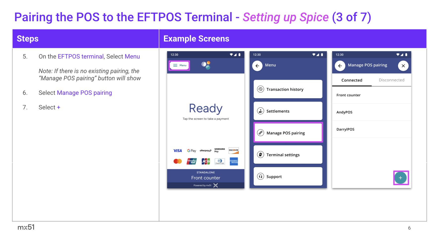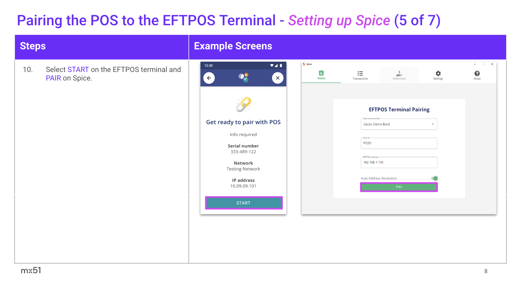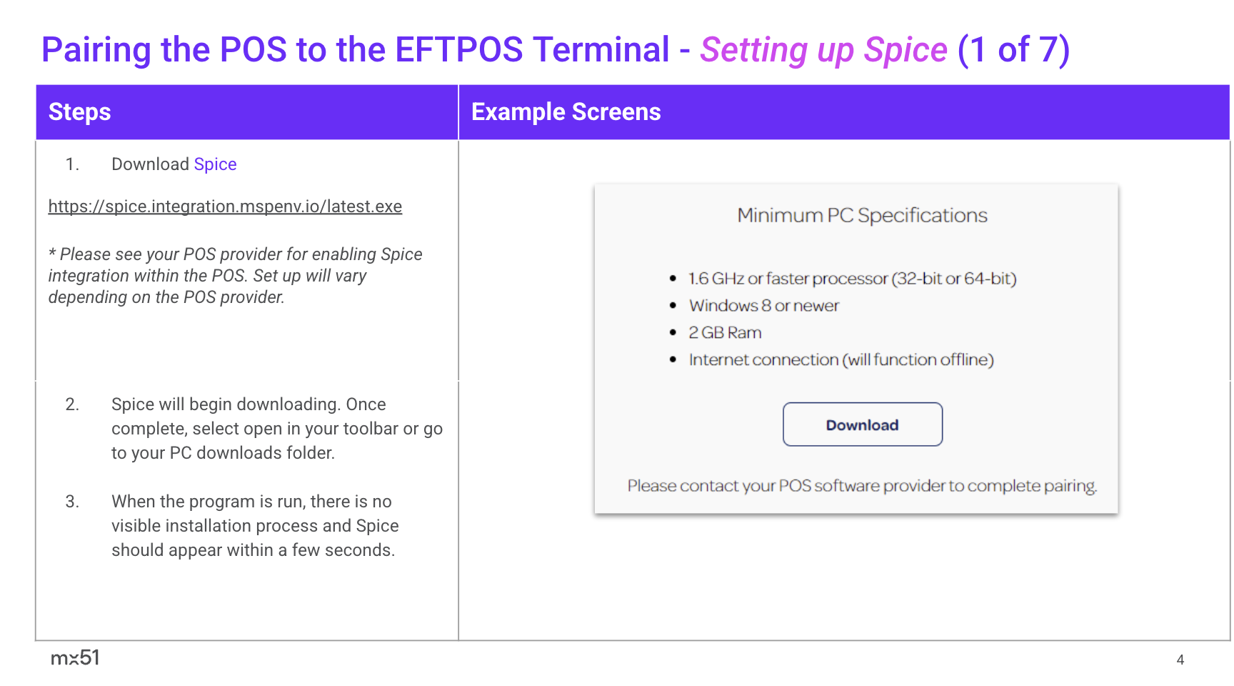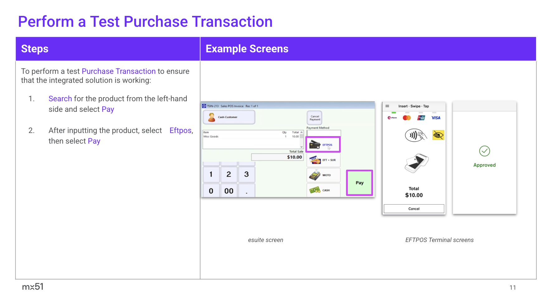 esuite Pairing and Transaction User Guide POS Vendor Features Supported Pairing Split Refund POS Split Bill Settlement Enquiry (adaptor based) Settlement (adaptor based) Auto IP Address Suppress Refund Password Suppress MOTO password esuite Pairing and Transaction User Guide (New).pptx.pdf 2 MB Download Related articles WizButler (Spice) POS Pairing and Transaction User Guide KPOS Spice Pairing Guide Shift8-POS Pairing and Transaction User Guide ZiiPOS Kiosk (SPI) POS Pairing and Transaction User Guide