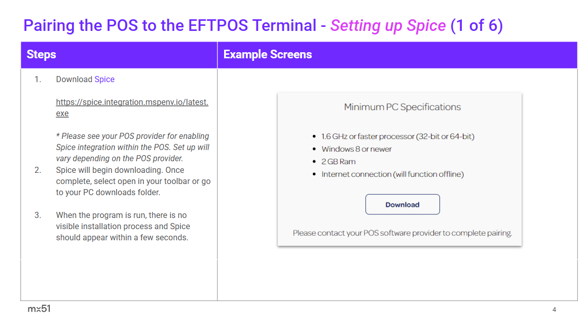 My School Connect (Spice) POS Pairing and Transaction User Guide POS Vendor Features Supported Purchase Refund Integrated Printing (POS) Auto IP Address Settlement Enquiry (adaptor based) Settlement (adaptor based) Pairing My School Connect POS Pairing and Transaction User Guide.pdf 1 MB Download