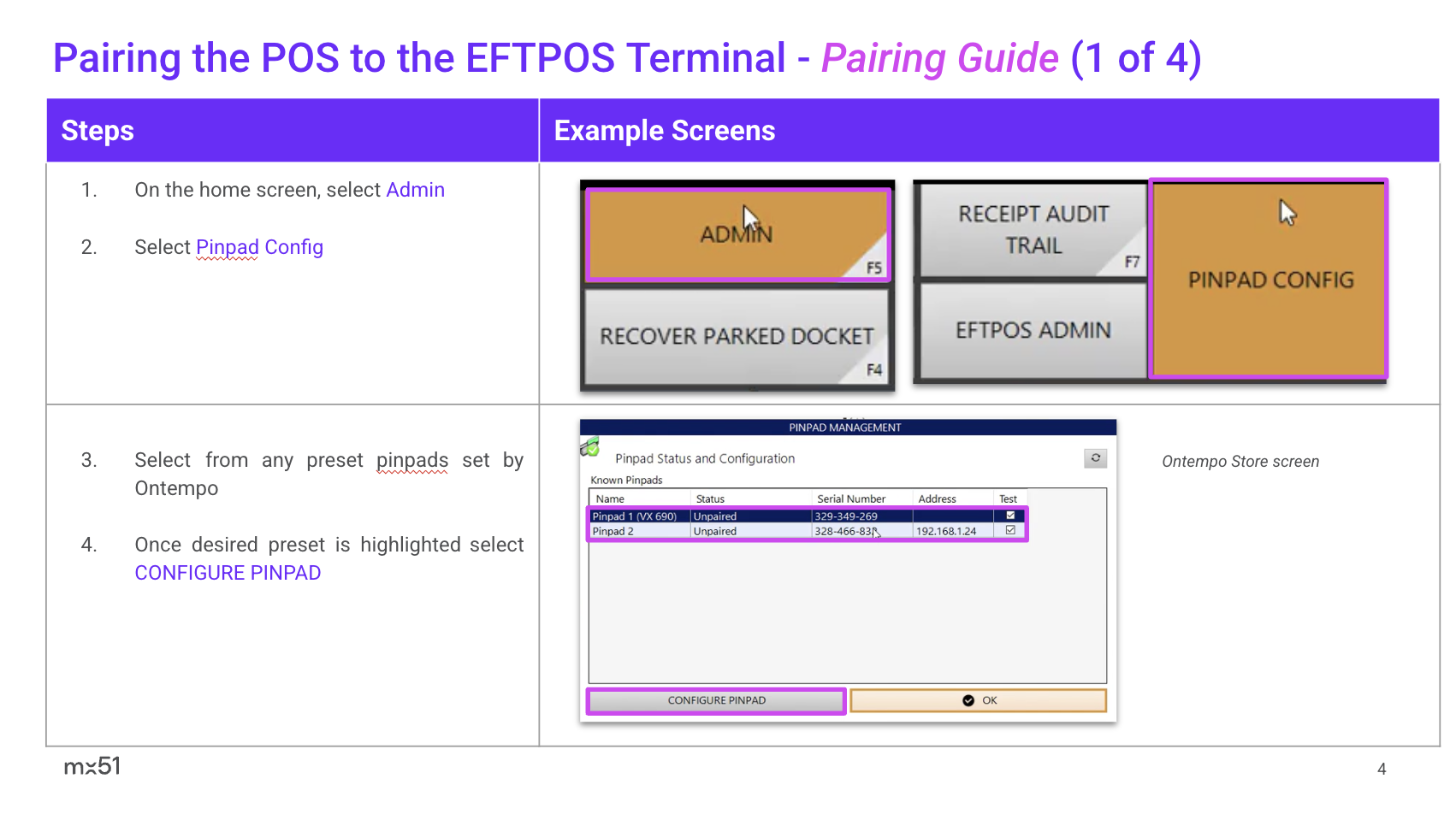 Ontempo Store Pairing and Transaction User Guide POS Vendor Features Supported Purchase Refund Integrated Printing Pairing Unpairing POS Enquiry and Settlement POS Split Transactions EFTPOS-based Tipping EFTPOS-based Surcharging Ontempo Store Pairing and Transaction User Guide (New).pdf 900 KB Download
